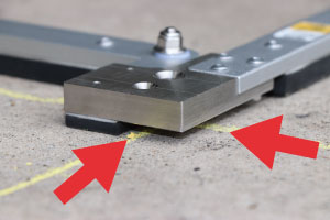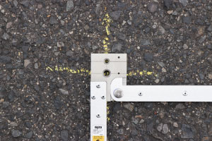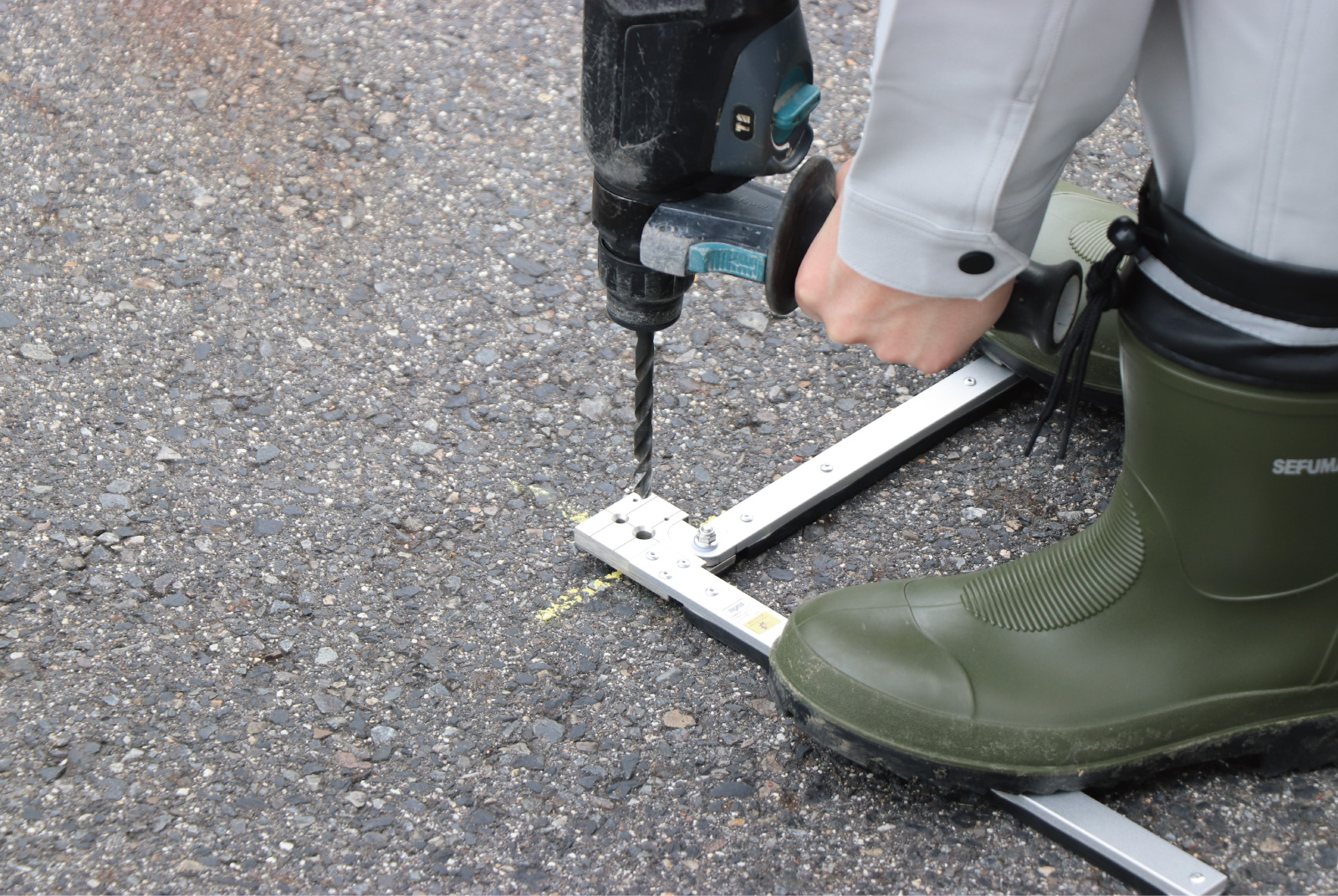 - 測量鋲を打ちたい場所(アスファルトやコンクリート)に点や線をケガキます。