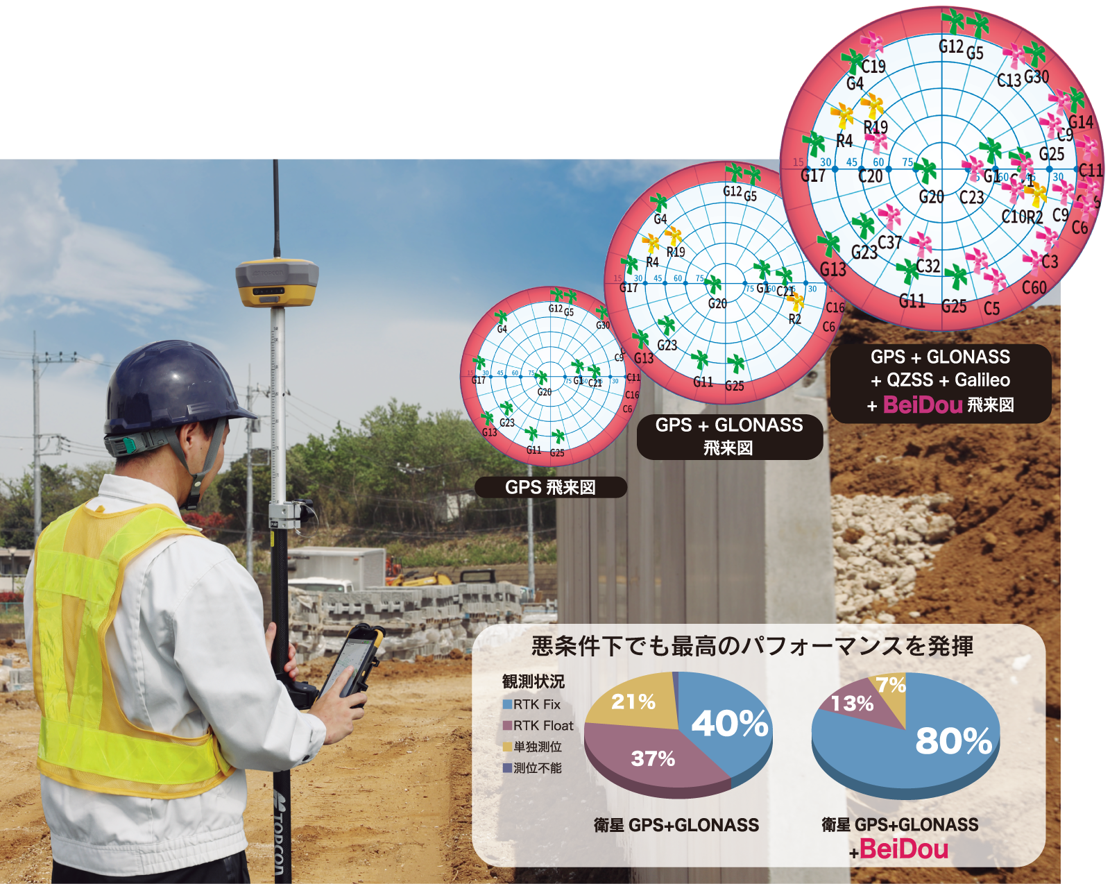 『HiPer XR』は、これらの多様な信号に対応し、都市部や山間部といった受信環境が厳しい場所においても、安定した高精度な測位を実現します。